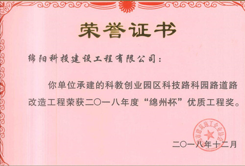 2018年度綿州杯優(yōu)質(zhì)工程獎(jiǎng)